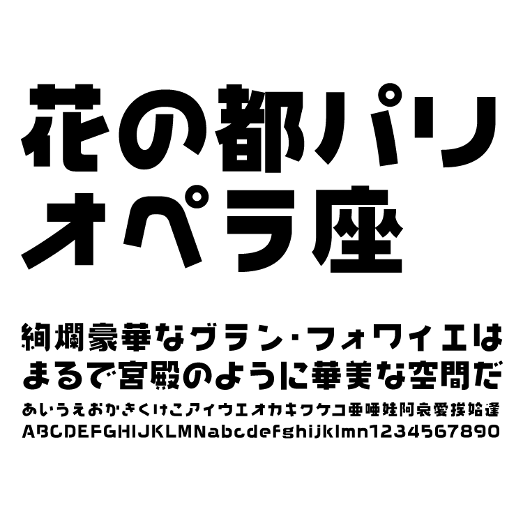 『アンバランスな美しさ』をコンセプトに、デフォルメの限界に挑戦したクリエイティブなゴシック体です。文字としての美しさと気品を保ちながら、強い個性を印象づける絶妙なバランス感を追求しました。可読性を損なうことなく、軽やかなリズム感とイキイキとした表情を生み出します。