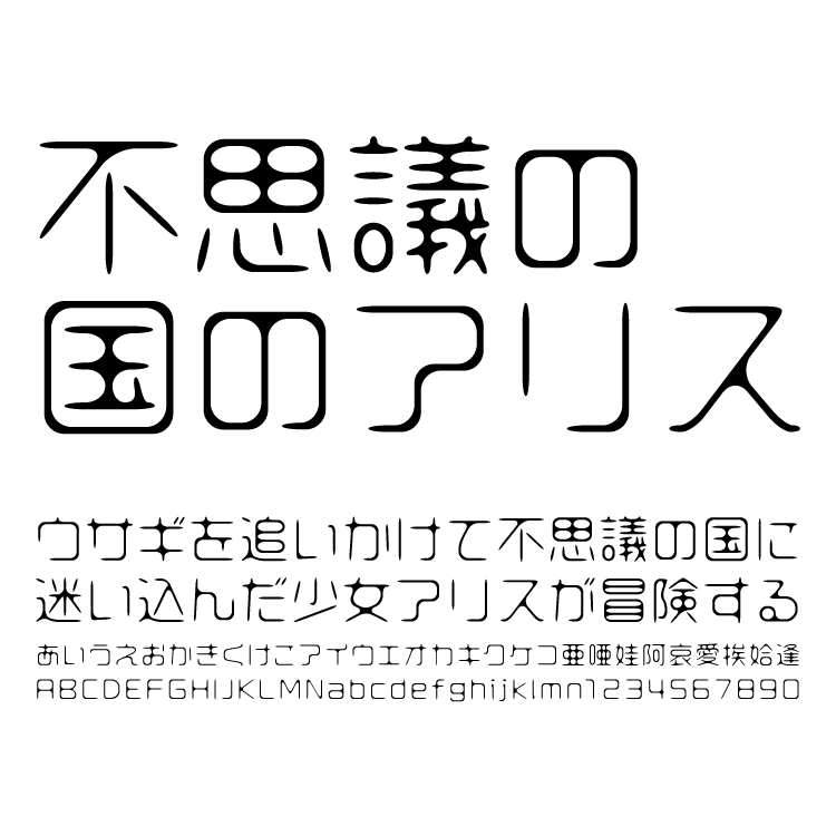 文字組によって表情がガラッと一変する、不思議な“百面相書体”です。画線の交点に施した墨だまり、微妙に不均等な線幅、先端部の丸みにより、生物や液体を思わせる揺らぎが生まれ、「愛らしいのに小憎らしい」「不気味なのに無邪気」…と、いくつもの表情を醸し出します。