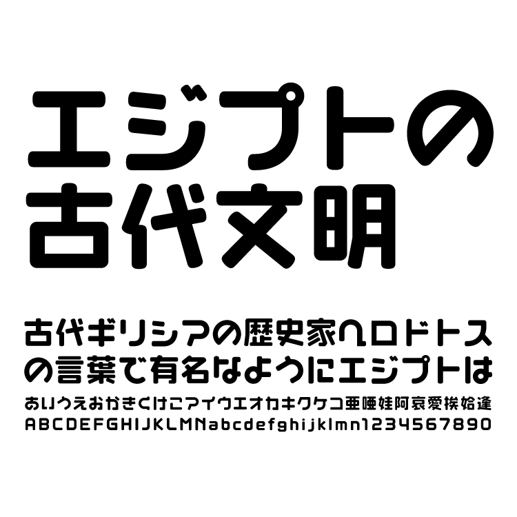 楽しく自由奔放な「ギガJr」をベースに、文字の先端部を丸く処理したグラフィカルな丸ゴシック体です。柔らかい曲線が、親しみやすさとポップな空気感を演出します。