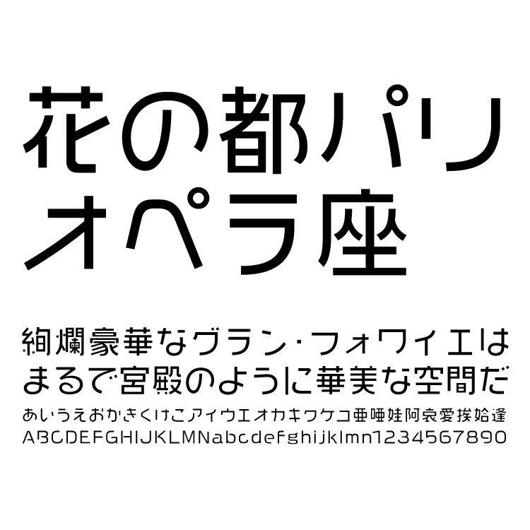 『アンバランスな美しさ』をコンセプトに、デフォルメの限界に挑戦したクリエイティブなゴシック体です。文字としての美しさと気品を保ちながら、強い個性を印象づける絶妙なバランス感を追求しました。可読性を損なうことなく、軽やかなリズム感とイキイキとした表情を生み出します。