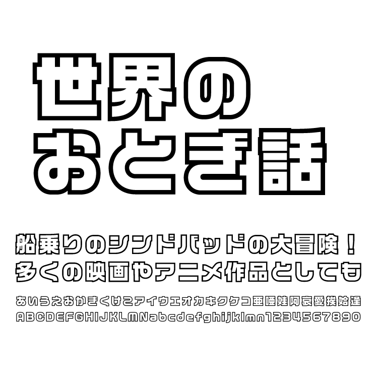 「ロゴJr-pop」は、「ロゴJr」のデザインをベースに生まれた装飾書体です。文字の輪郭線のみを強調したデザインの「ロゴJr-pop-FutoLine」と、文字の背後に影を落とし立体的なデザインに見せる効果を持つ「ロゴJr-pop-Shadow」があります。日本語フォントとしては数少ない装飾書体で、文字数も9,354文字と充実。実用性も十分です。(Adobe-japan 1-3準拠)