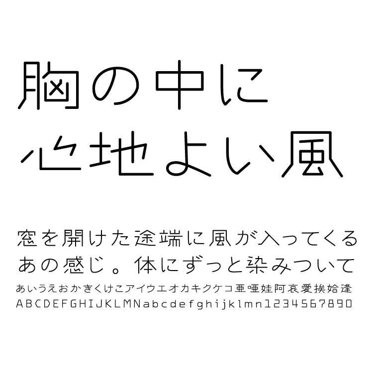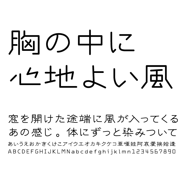 スッキリしているのに柔らかな色気や愛嬌がある、穏やかな表情の“癒し系”フォントです。素直でシンプルなエレメントと丸みを帯びたエッジが特徴。どことなく手書きのような素朴な風合いも感じられ、思いやニュアンスを豊かに伝え、人の心まで温かくしてくれます。