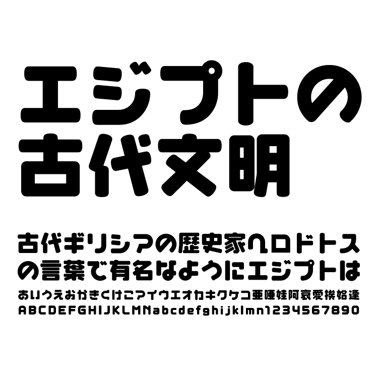 楽しく自由奔放な「ギガJr」をベースに、文字の先端部を丸く処理したグラフィカルな丸ゴシック体です。柔らかい曲線が、親しみやすさとポップな空気感を演出します。