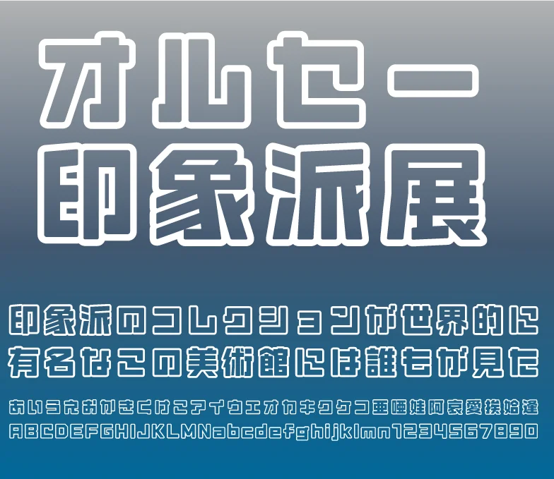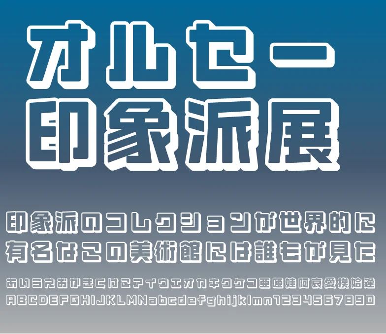 「ラインGアール-pop」は、「ラインGアール」のデザインをベースに生まれた装飾書体です。文字の輪郭線のみを強調したデザインの「ラインGアール-pop-FutoLine」と、文字の背後に影を落とし立体的なデザインに見せる効果を持つ「ラインGアール-pop-Shadow」があります。
