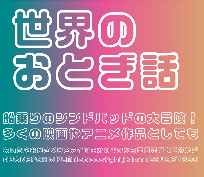 「ロゴ丸Jr-pop」は、「ロゴ丸Jr」のデザインをベースに生まれた装飾書体です。文字の輪郭線のみを強調したデザインの「ロゴ丸Jr-pop-FutoLine」と、文字の背後に影を落とし立体的なデザインに見せる効果を持つ「ロゴ丸Jr-pop-Shadow」があります。