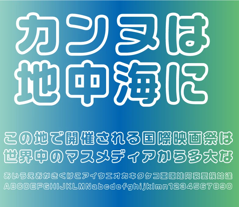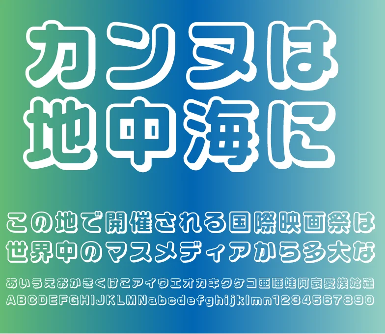 「ロゴ丸-pop」は、「ロゴ丸」のデザインをベースに生まれた装飾書体です。文字の輪郭線のみを強調したデザインの「ロゴ丸-pop-FutoLine」と、文字の背後に影を落とし立体的なデザインに見せる効果を持つ「ロゴ丸-pop-Shadow」があります。